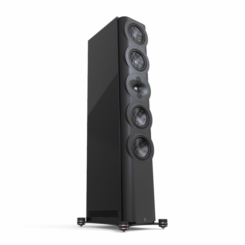 Четыре 180 миллиметровых НЧ-СЧ широкополосных динамика отрабатывают нижнюю середину и басовый регистр вплоть до 25 Гц и тоже оснащены тонкослойными углеродными диафрагмами из материала Textreme с уникальным крупным сетчатым плетением. Прочность диффузоров увеличена за счет сэндвич-конструкции с прослойкой из вспененного полимера, поэтому материал получился очень легким. Излучающие поверхности у таких драйверов обладают необходимой жесткостью и при этом совершенно «бесшумны» в плане резонансов. Колонки слегка отклонены назад, возможно, для временного согласования полос. Симметрия массива драйверов, расположение, а также конструкция и высота высокочастотного модуля позволяют слушать эти колонки с любого расстояния, даже с близкого, и под любым углом.