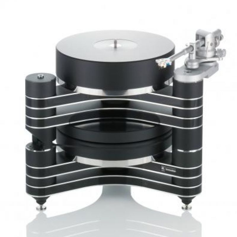 Новым этапом в развитии линейки Innovation стал выпуск проигрывателя винила Master Innovation, который основан на инновационных решениях, использованных во флагманской модели Statement.Чистое и точное звучание.Модель исполнена в эффективном дизайне. Базой являются трехлучевые платформы, расположенные друг над другом. Каждая платформа состоит из слоев усиленной древесной плиты и алюминия, которые имеют отличные антивибрационные свойства. Инженеры полностью развязали верхний опорный диск и двигатель, применив уникальный магнитный привод. Это позволило достигнуть рекордно низкого коэффициента детонации, который гарантирует точное и чистое звучание.Оптическая система контроля скорости вращения OSC.Нижняя панель оборудована ножками с шипами, которые регулируются и опираются на подставки круглой формы. На ней установлен двигатель постоянного тока, который имеет кнопки выбора скорости и клавишу включения питания. На втором этаже размещена предустановленная площадка для тонарма. СМВ подшипник соединяется с диском, который бесконтактным способом взаимодействует с приводным диском нижней платформы. Результатом стало избавление от вибраций и стабильная скорость вращения. Проигрыватель создает безукоризненный тональный баланс, детальное и высокоточное звучание.Основные особенности:магнитный привод с полной развязкой двигателя и верхнего опорного диска,возможность установки сразу трех тонармов, включая тангенциальный,оптическая система контроля скорости вращения OSC.ва сдвоеных стола с инновационной системой магнитного привода от Clearaudio Statement, анти-резонансный тяжелый корпус (фанера высокой плотности (panzerholz), металические накладки, магнитный подшипник. Исполнение: черный лак, металические части: черный, плата: черный акрил.